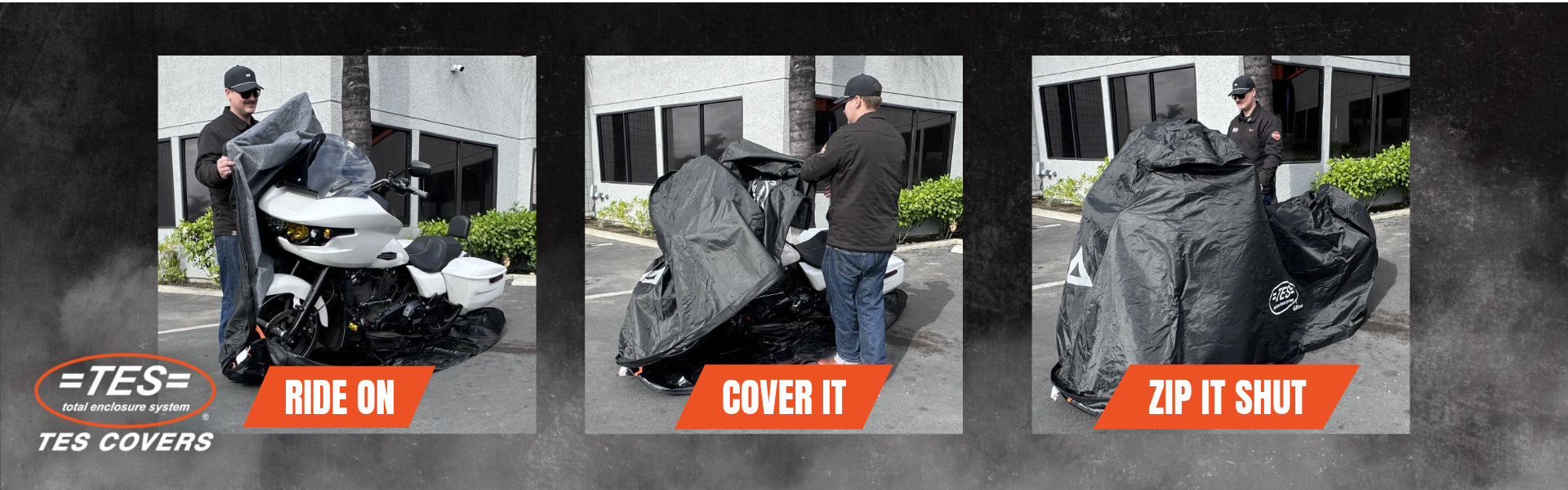 Our Ride on Cover Works Just Like A Garment Bag for A Nice Suit! Ride in, Cover It, and Zip it Shut. Keeps your ride ready to go.
